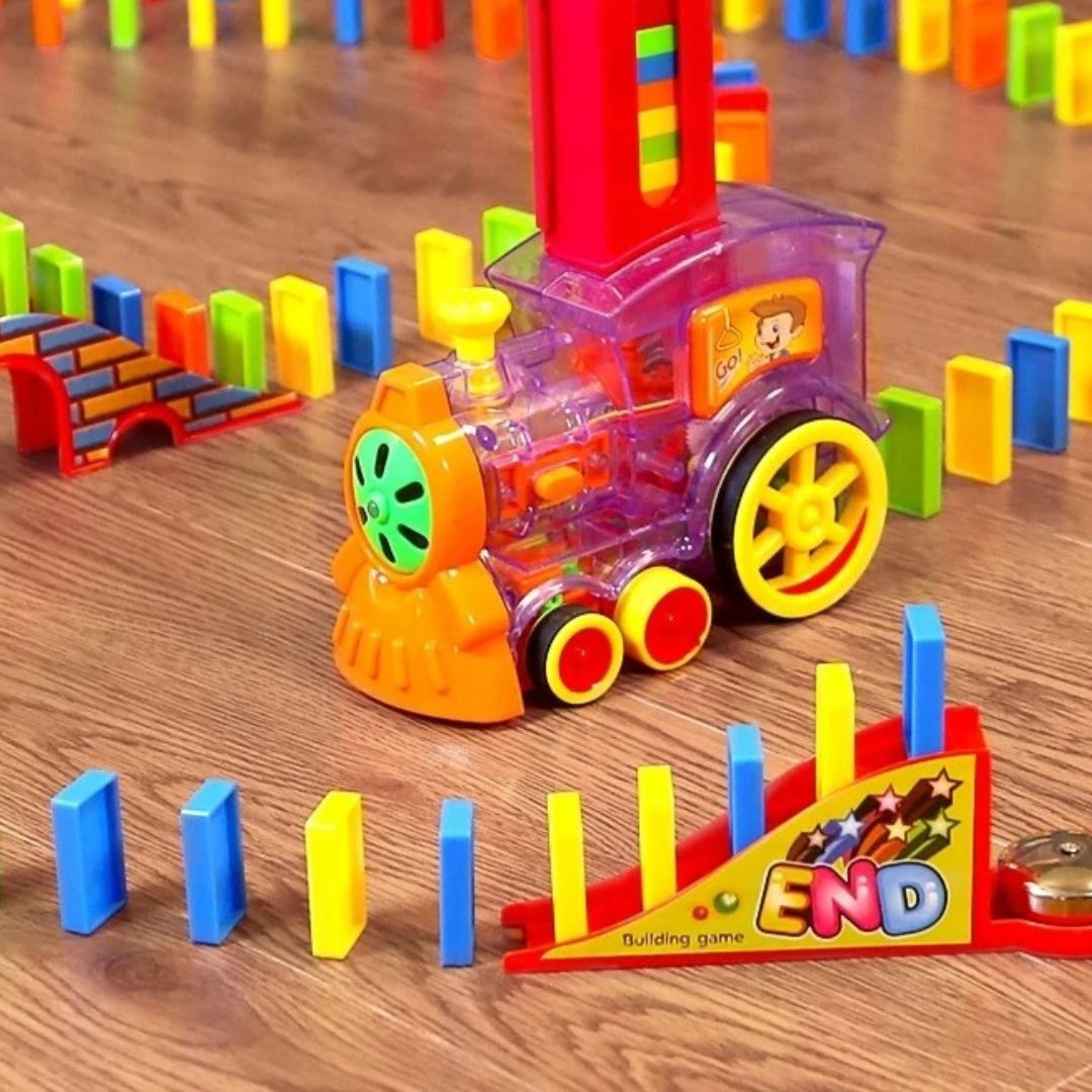 Este tren de dominó fomenta la coordinación y las habilidades motoras finas . Cada ficha de dominó colocada y cada curva en el recorrido fortalecen su precisión y habilidad manual mientras se divierten.
